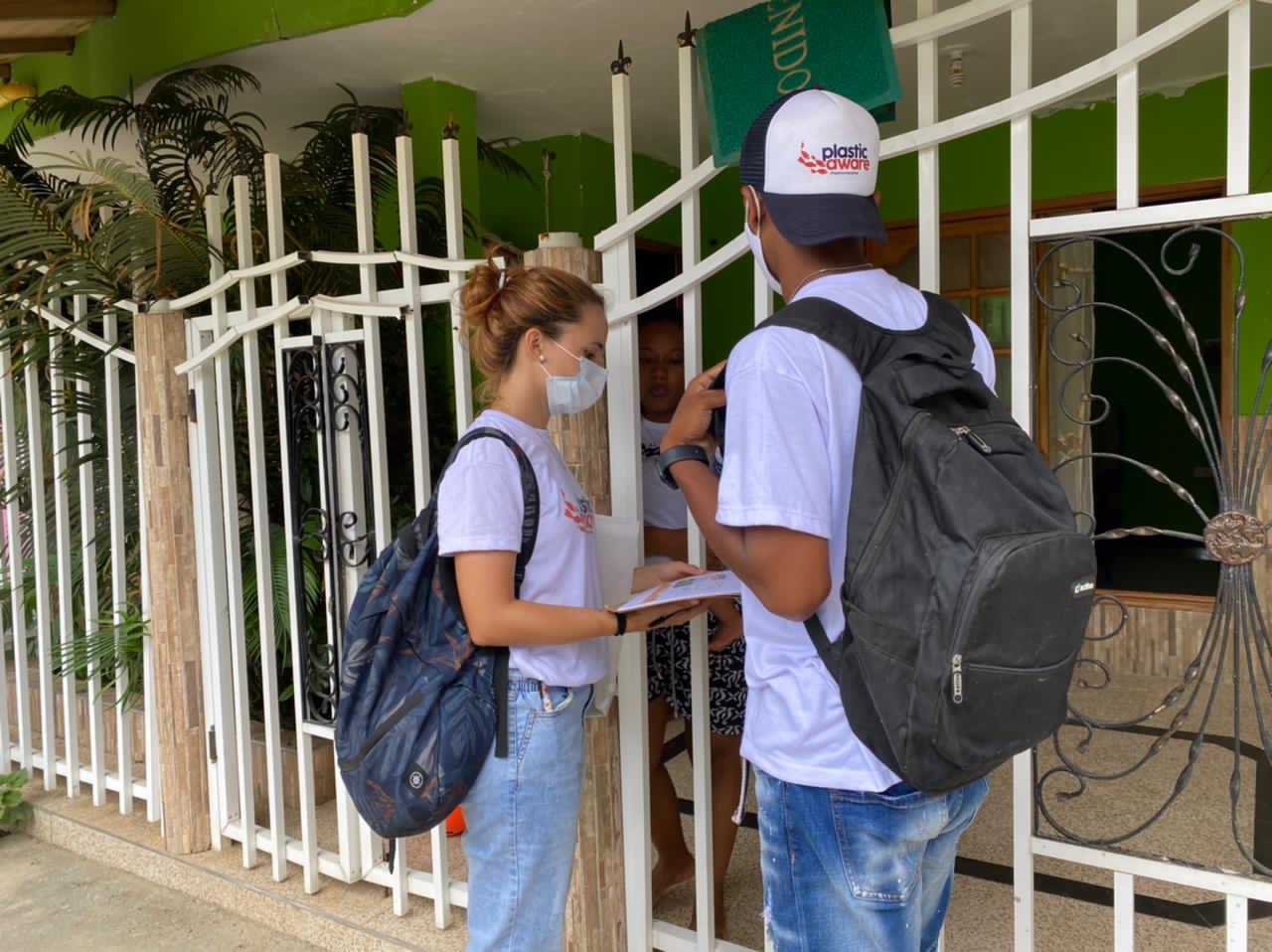 Residents. Over the course of April we visited a total of 200 households to introduce Plasticaware. Since the majority of people were unaware of the existing recycling system of the state of Colombia the conversations revolved largely around that and the importance of fighting against plastic pollution. We provided practical tips on how to reuse recyclables and introduced the concept of “eco-botella” (a plastic bottle which is filled with small plastic packages).